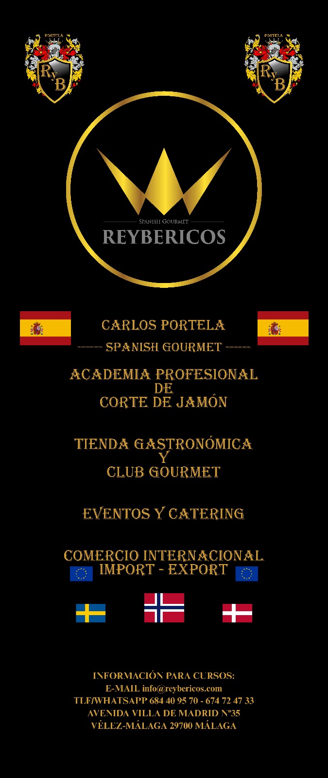 Tras más de 12 años trasladando y enseñando la cultura del Jamón Ibérico en Noruega , atendiendo a entidades oficiales, embajadas, cadenas de restaurantes, hoteles y un sinfín de Eventos, Reybéricos abre su Academia Escuela Nacional e Internacional de Corte de Jamón en la Costa del Sol , todo ello para ampliar nuestra red de Cortadores y cubrir las necesidades de profesionales en Noruega, Suecia, Dinamarca y otros países que recientemente nos han solicitado Cortadores de Jamón Profesional, incluida también España.